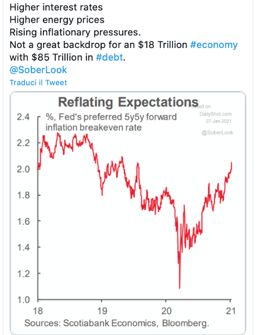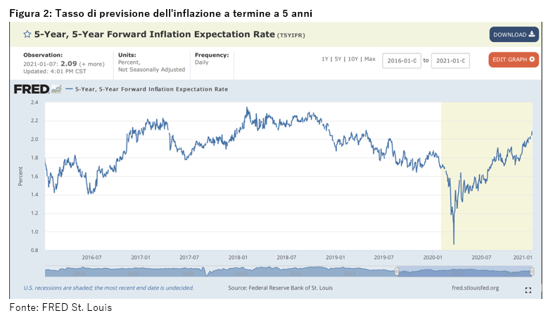 Dalla Federal Reserve Bank di St. Louis: da luglio 2020 le aspettative di inflazione per gli Stati uniti sono in aumento.