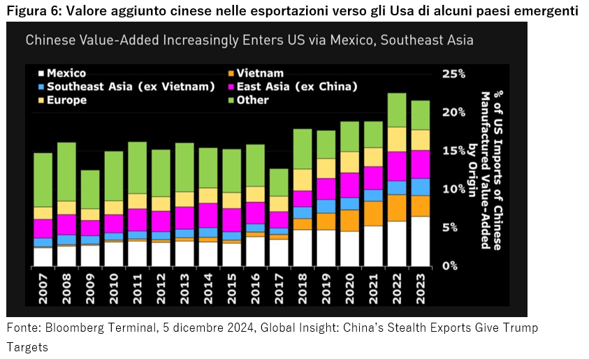 È necessario tenere presente che la scelta di investimento diretto estero può dipendere da molteplici variabili che vanno oltre la domanda finale che il paese destinatario dell’investimento diretto estero può generare. La disponibilità di capitale, infrastrutture e forza lavoro qualificata tra le altre variabili sono fondamentali per la scelta del paese in cui investire. Il crescente protezionismo dell’Amministrazione Trump e la crescente propensione verso politiche migratorie più restrittive potrebbero nel tempo influenzare la capacità degli Usa di attrarre i fattori produttivi necessari a valorizzare l’investimento diretto estero e far sì che i partner commerciali degli Usa cerchino alternative percorribili ad un crescente isolazionismo degli Usa (The US’s economic partners are racing to close new bilateral deals and reroute supply chains to cope with increased US protectionism under Donald Trump, una tendenza evidenziata ed analizzata da Ruchir Sharma, contributing editor del Financial Times.).